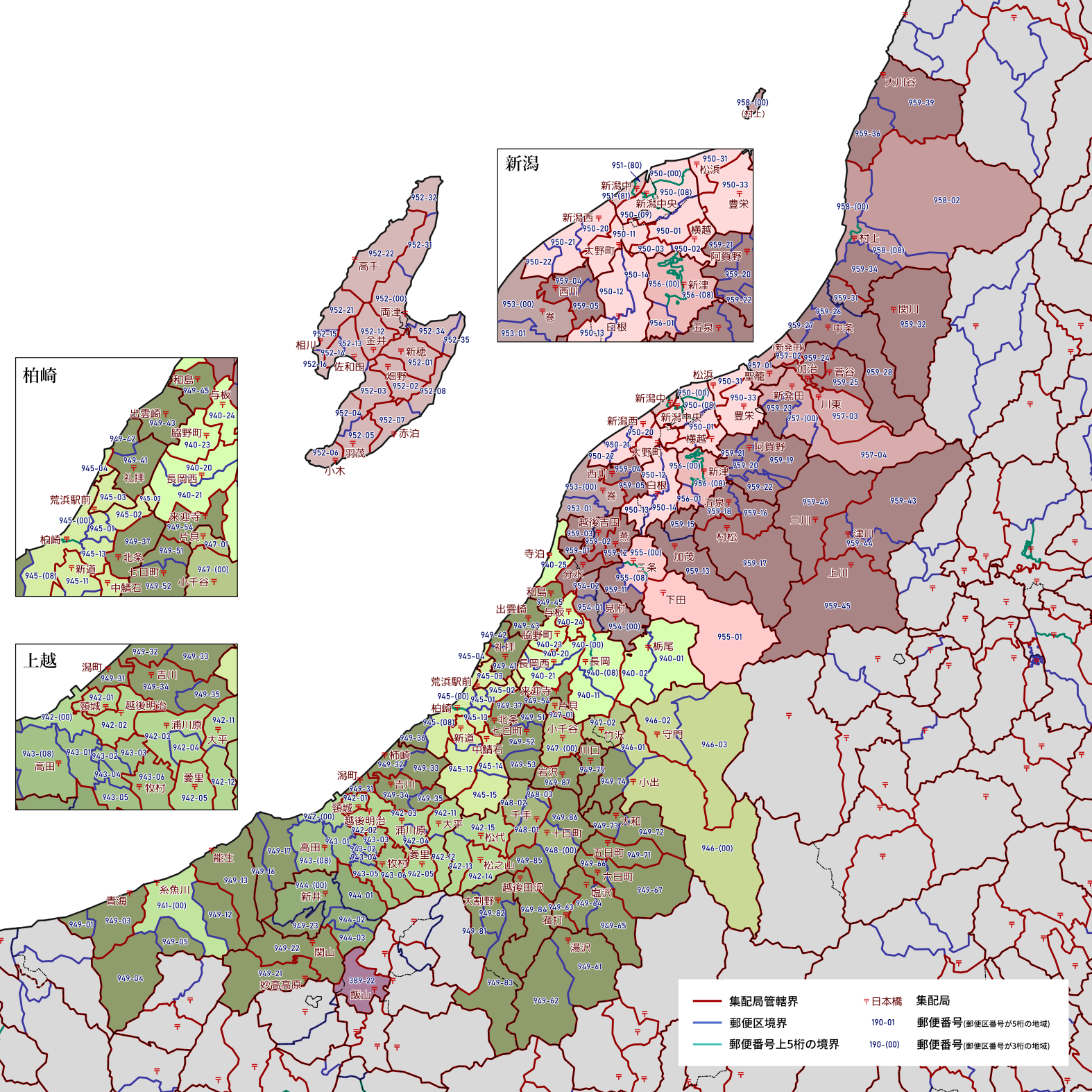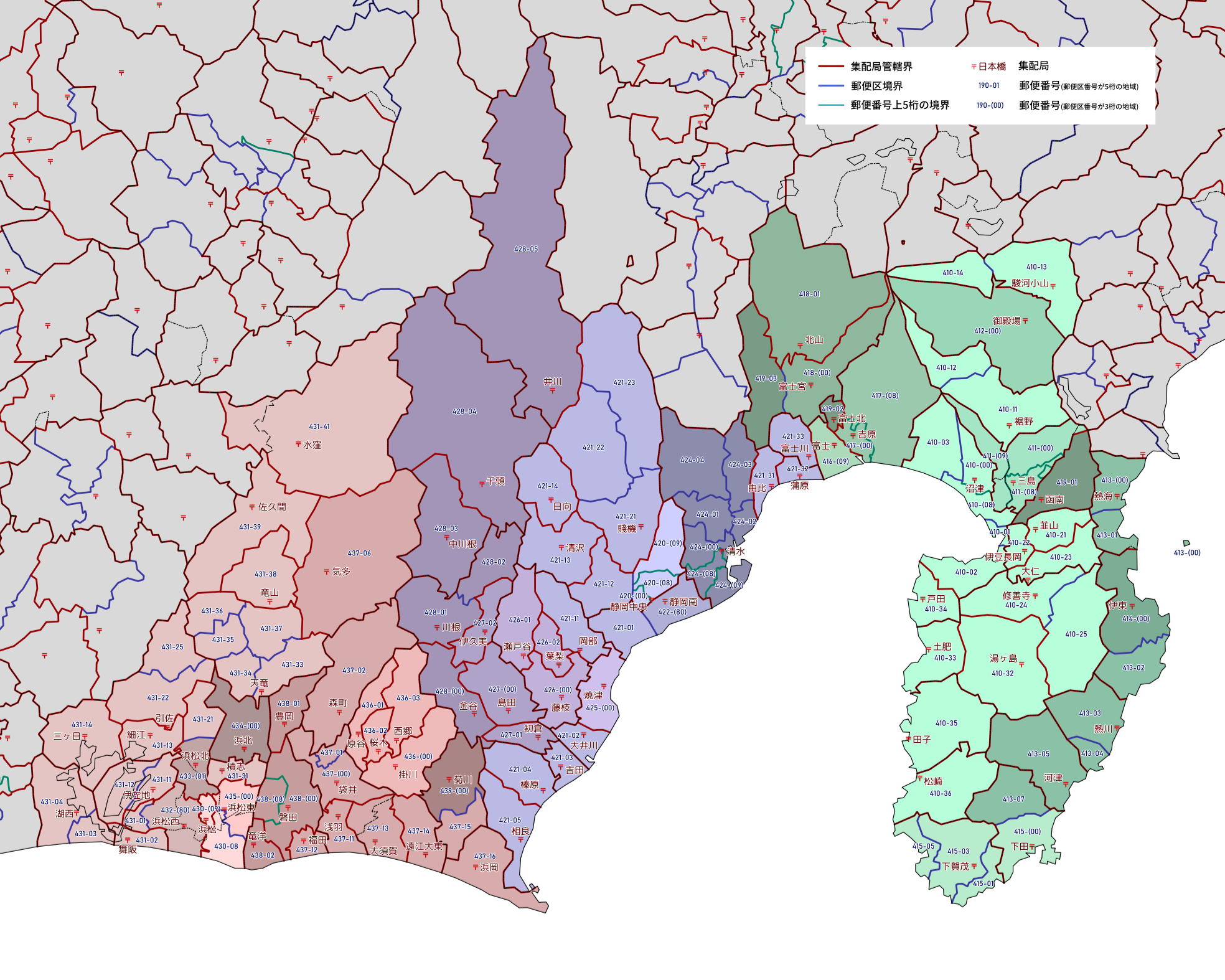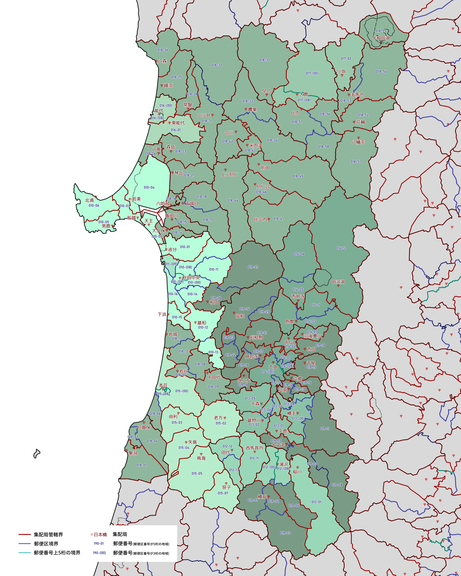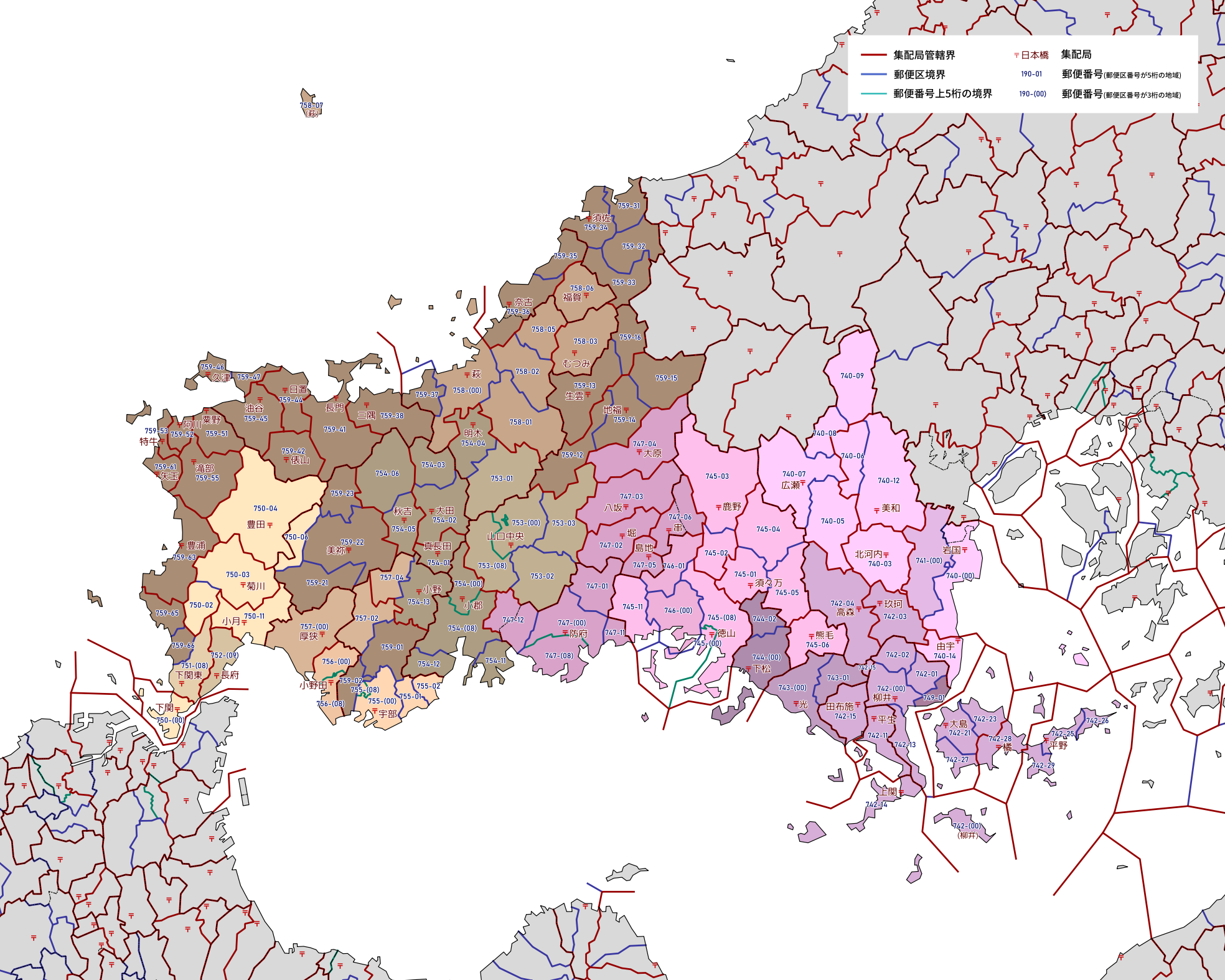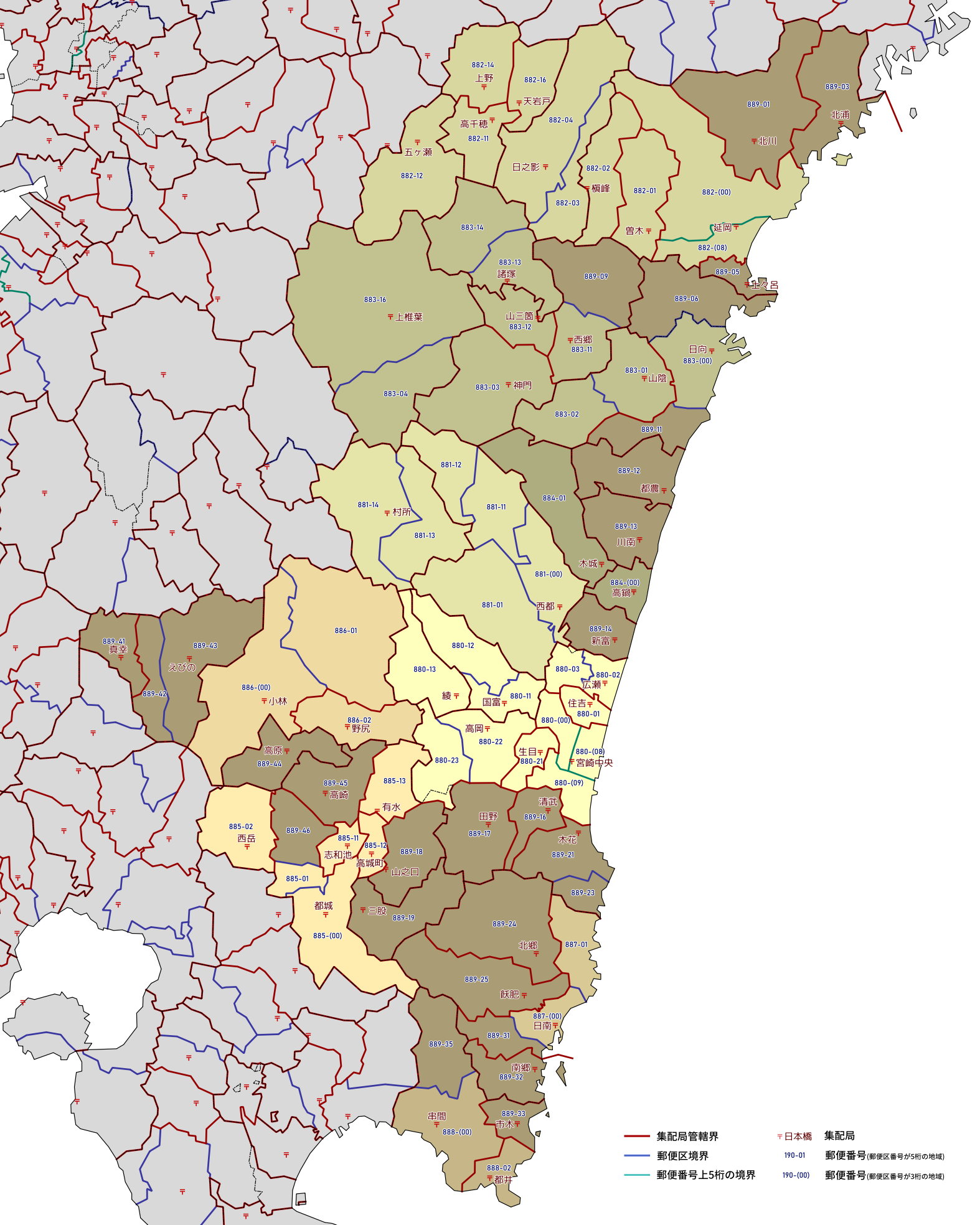 郵便番号の上5桁ごとに区分した都道府県別の地図です。