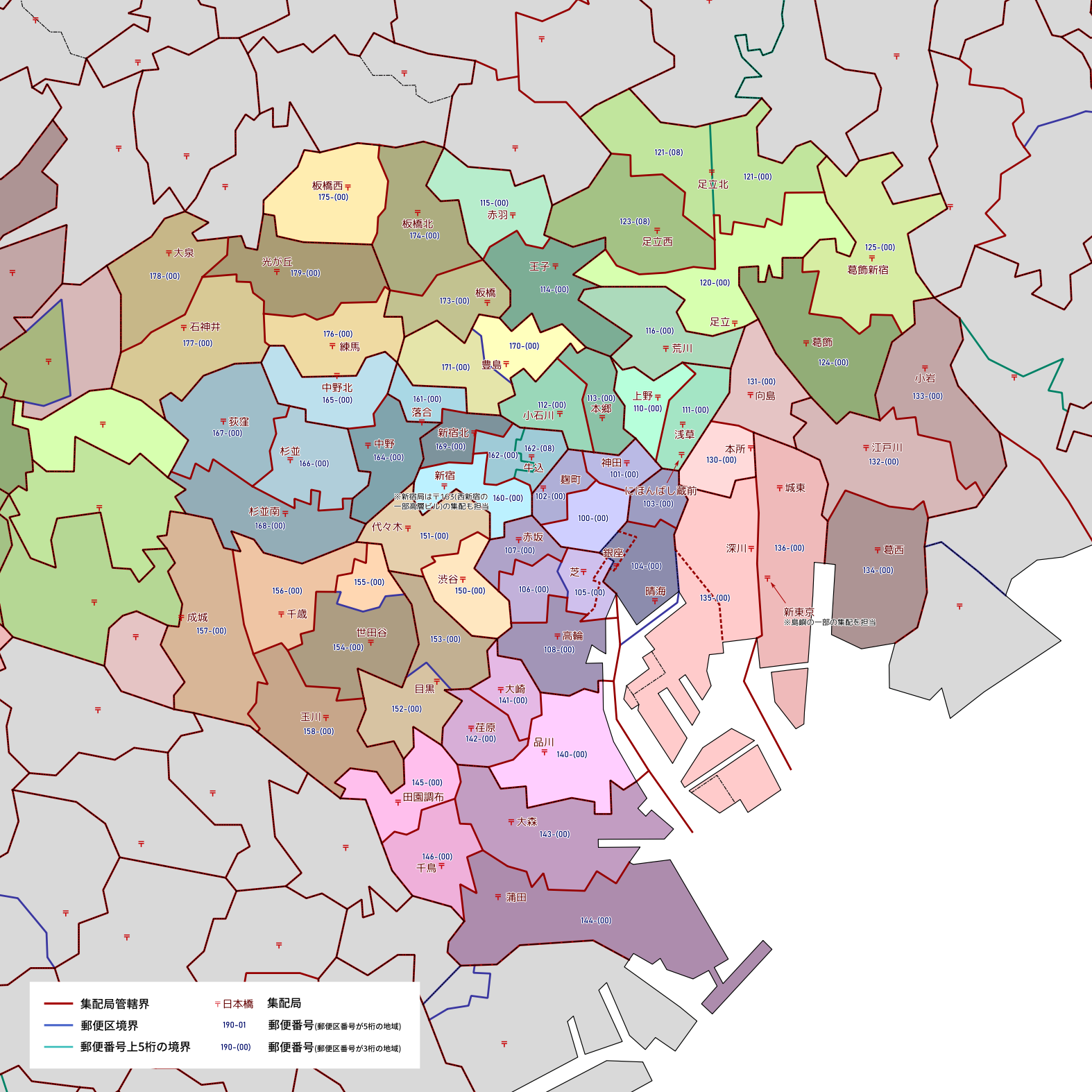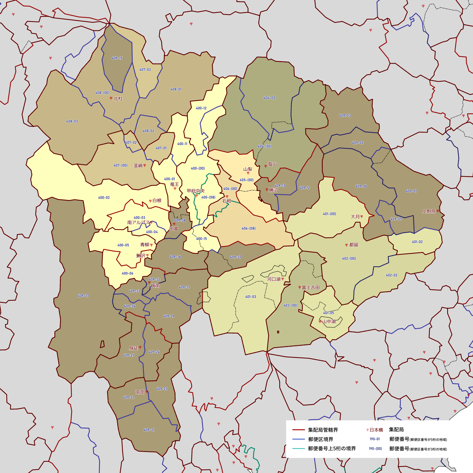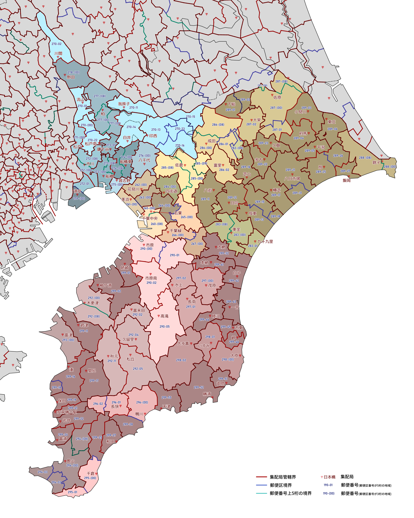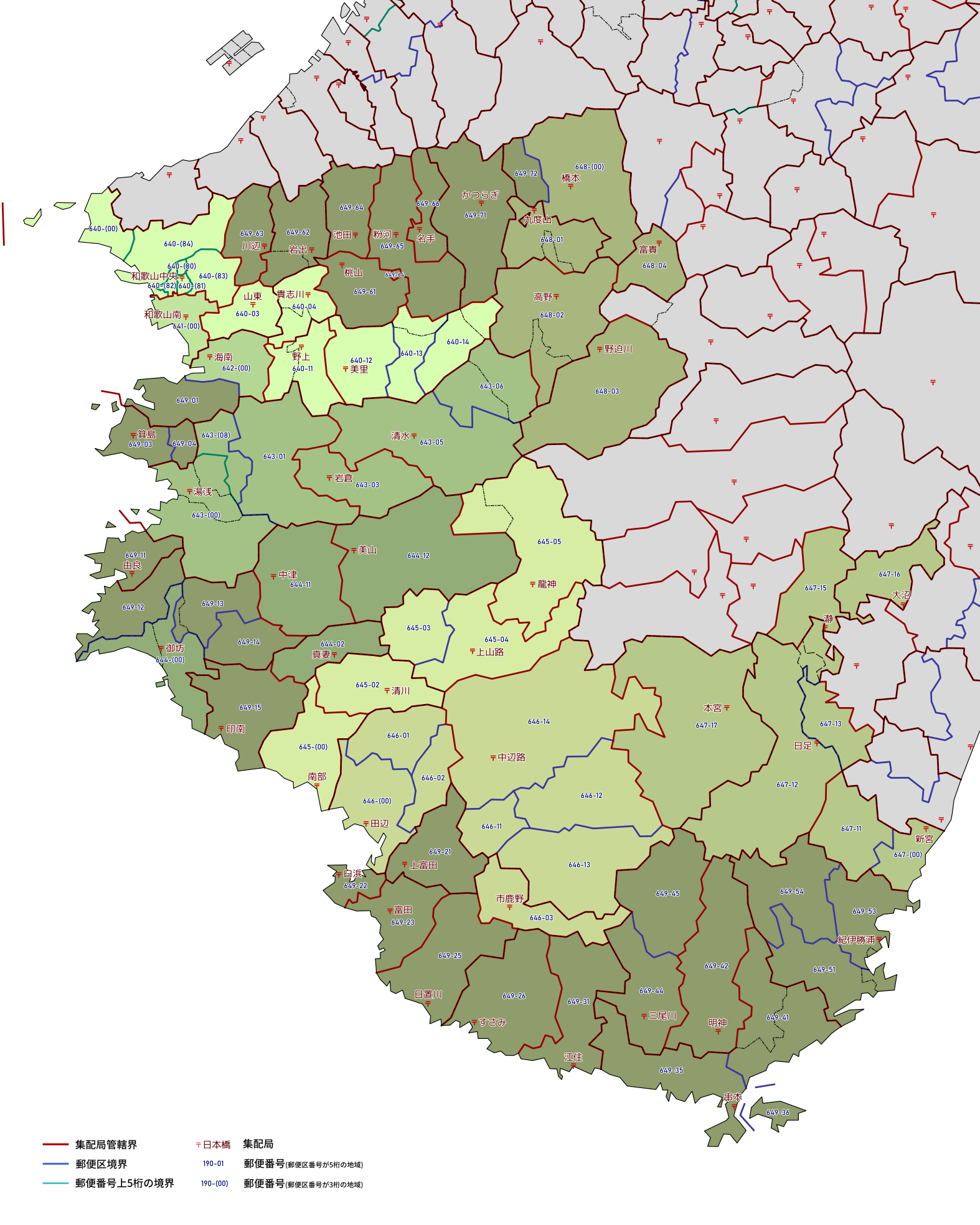 郵便番号の上5桁ごとに区分した都道府県別の地図です。