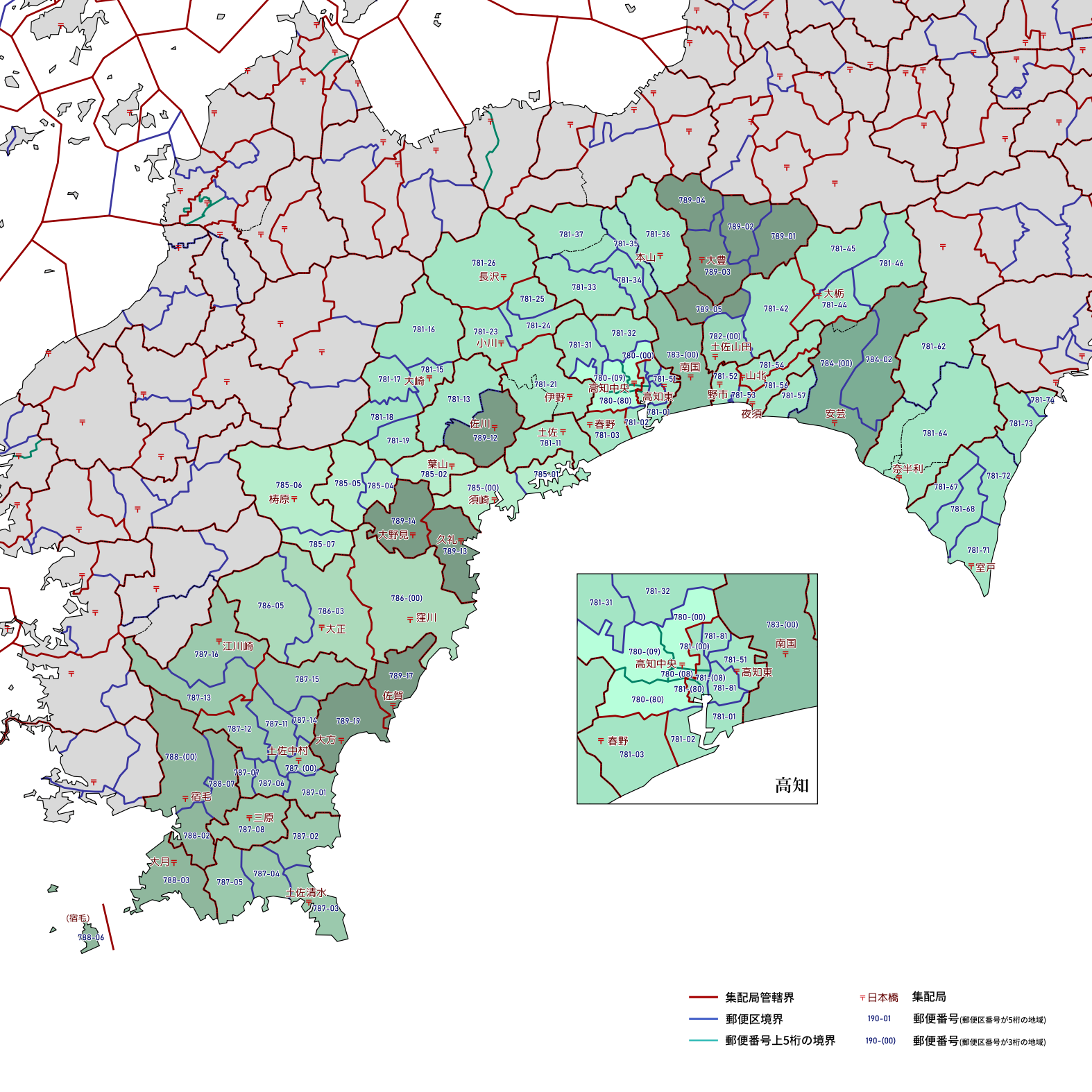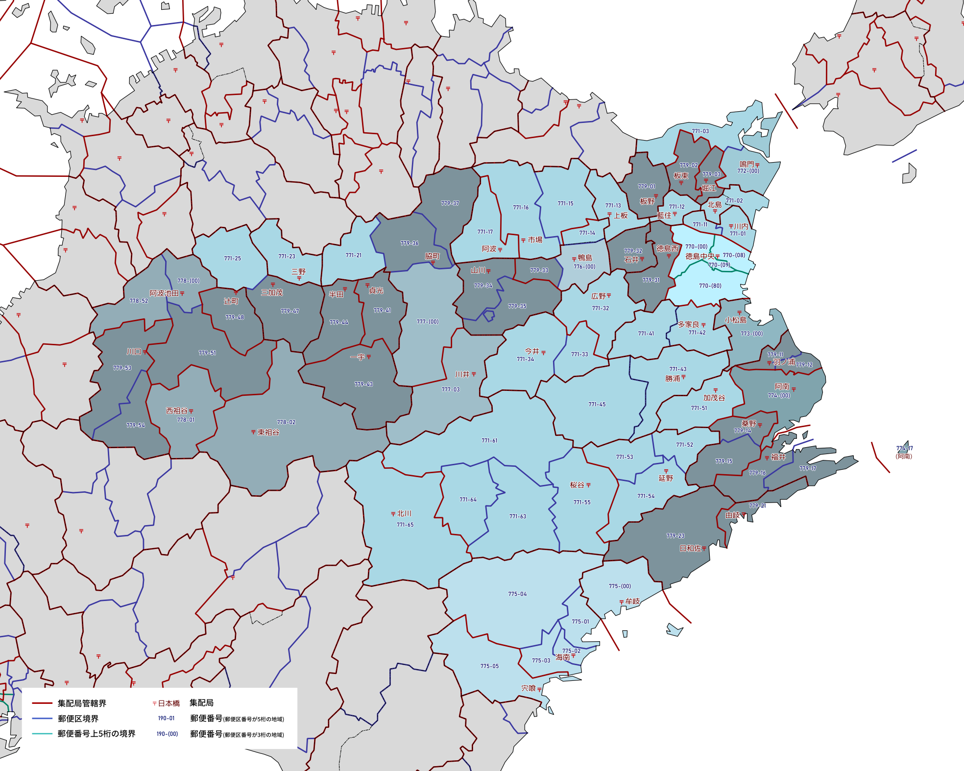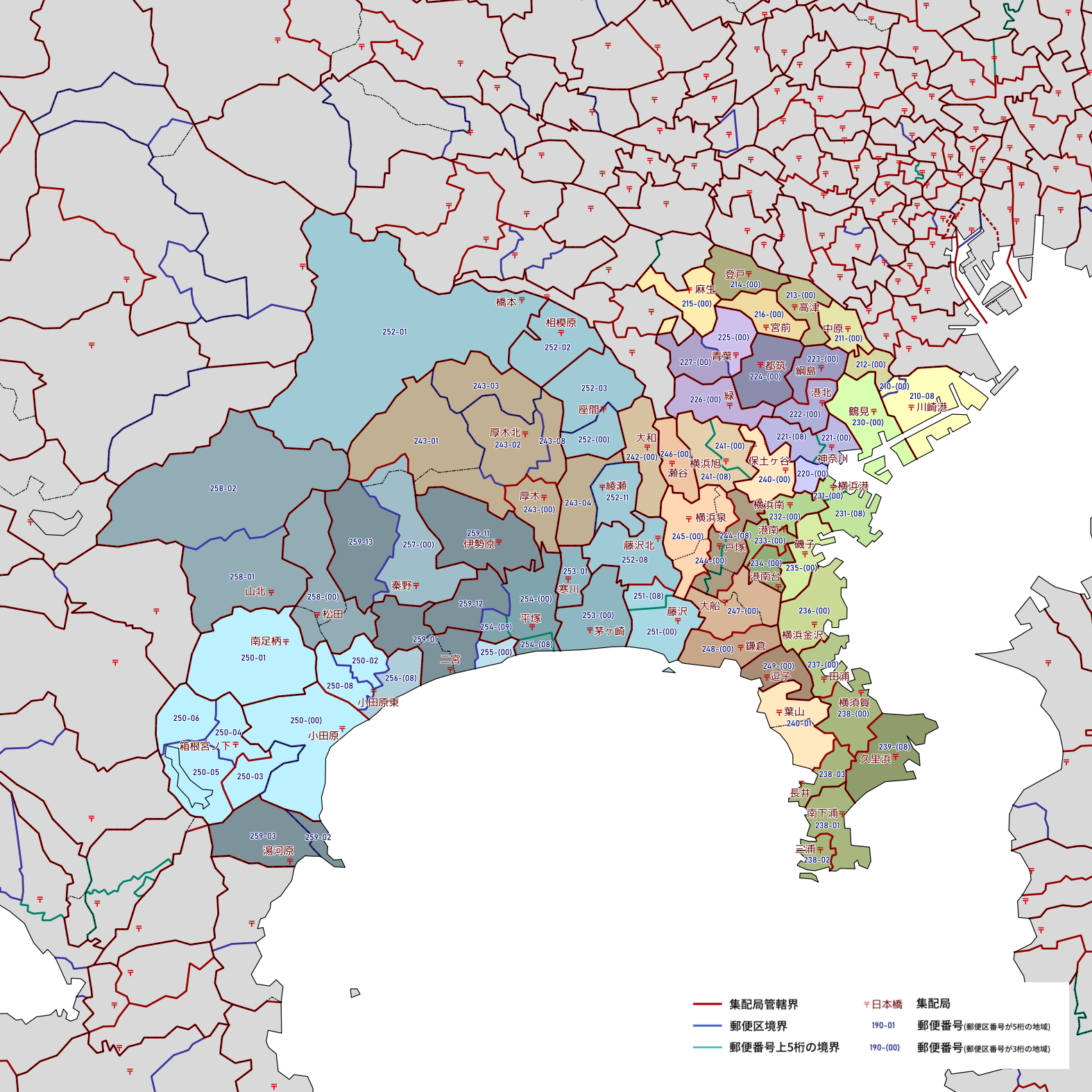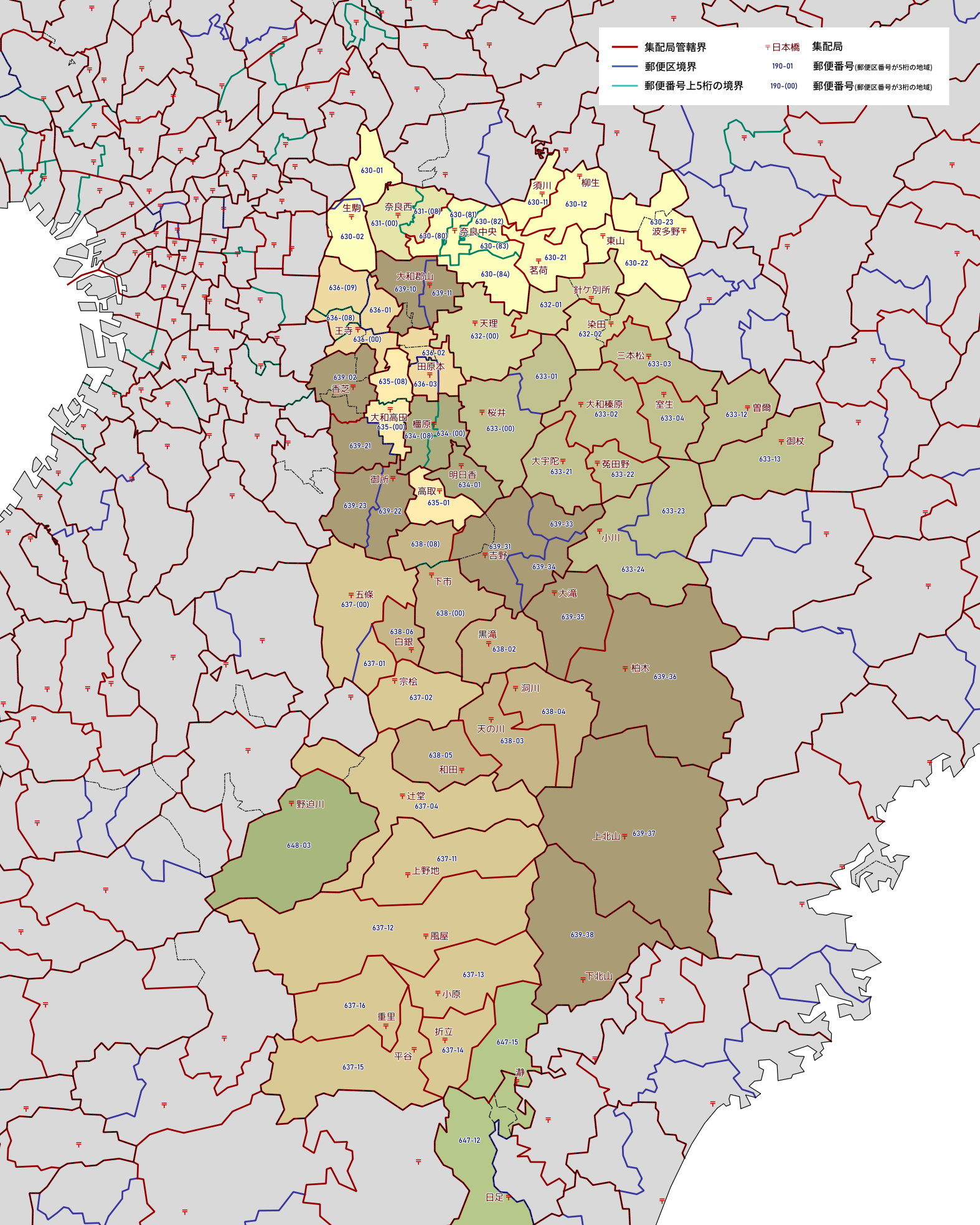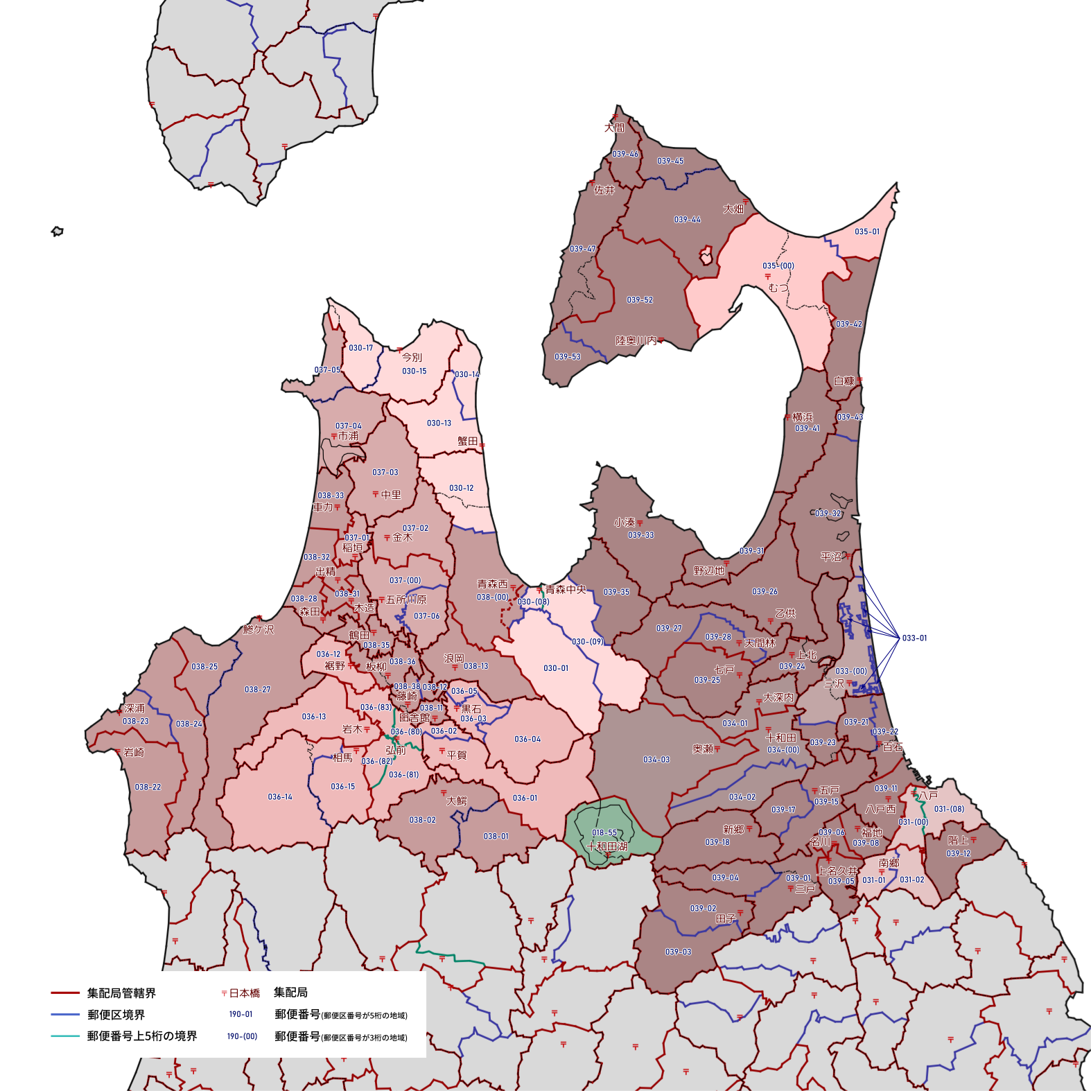 郵便番号の上5桁ごとに区分した都道府県別の地図です。