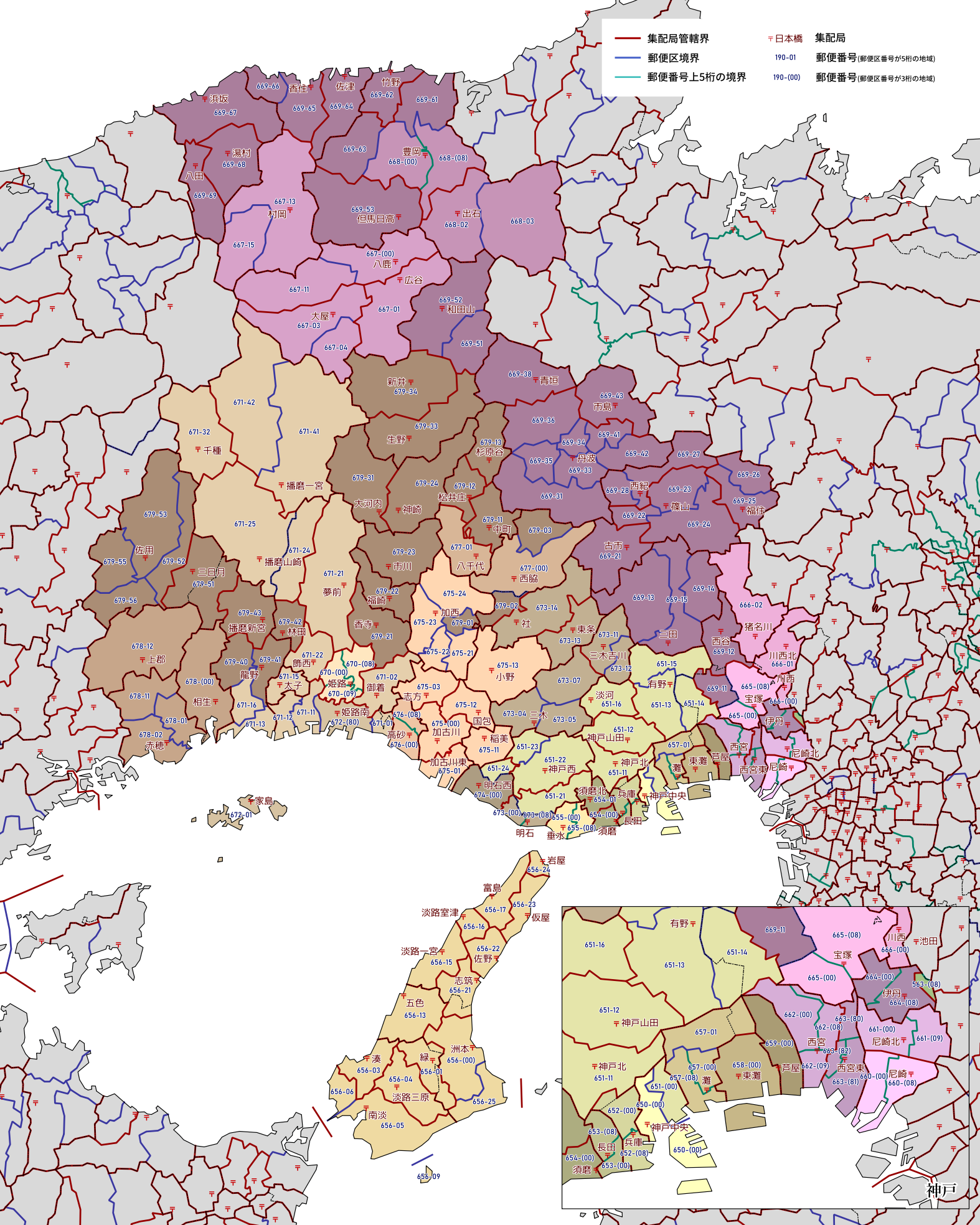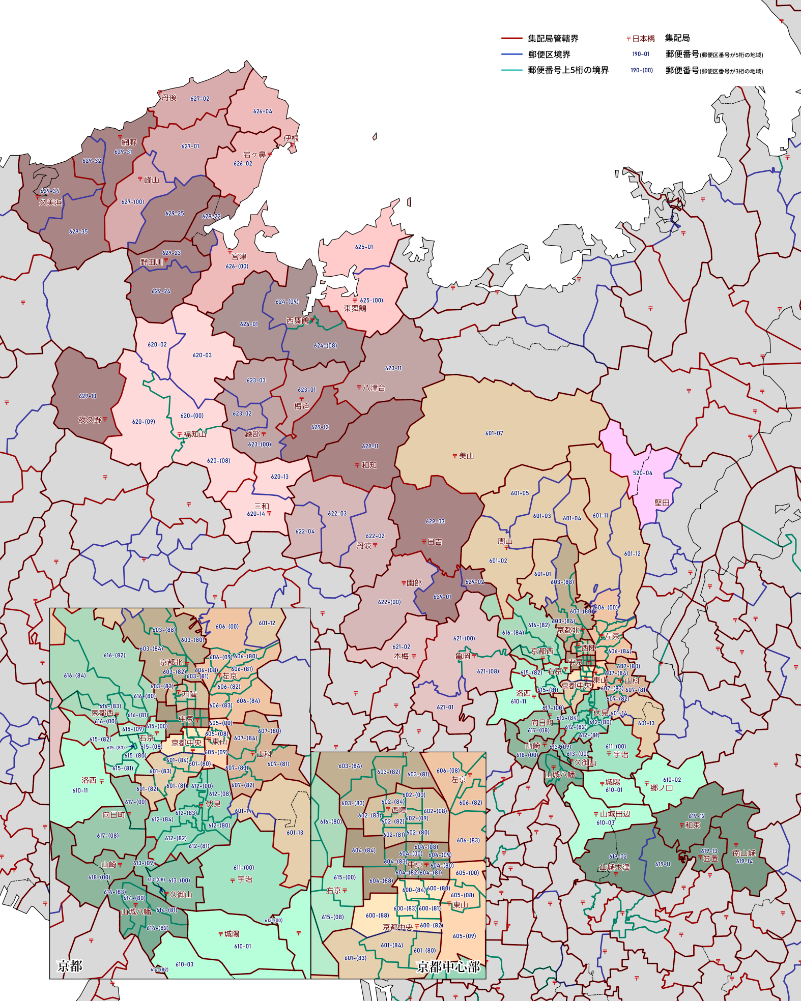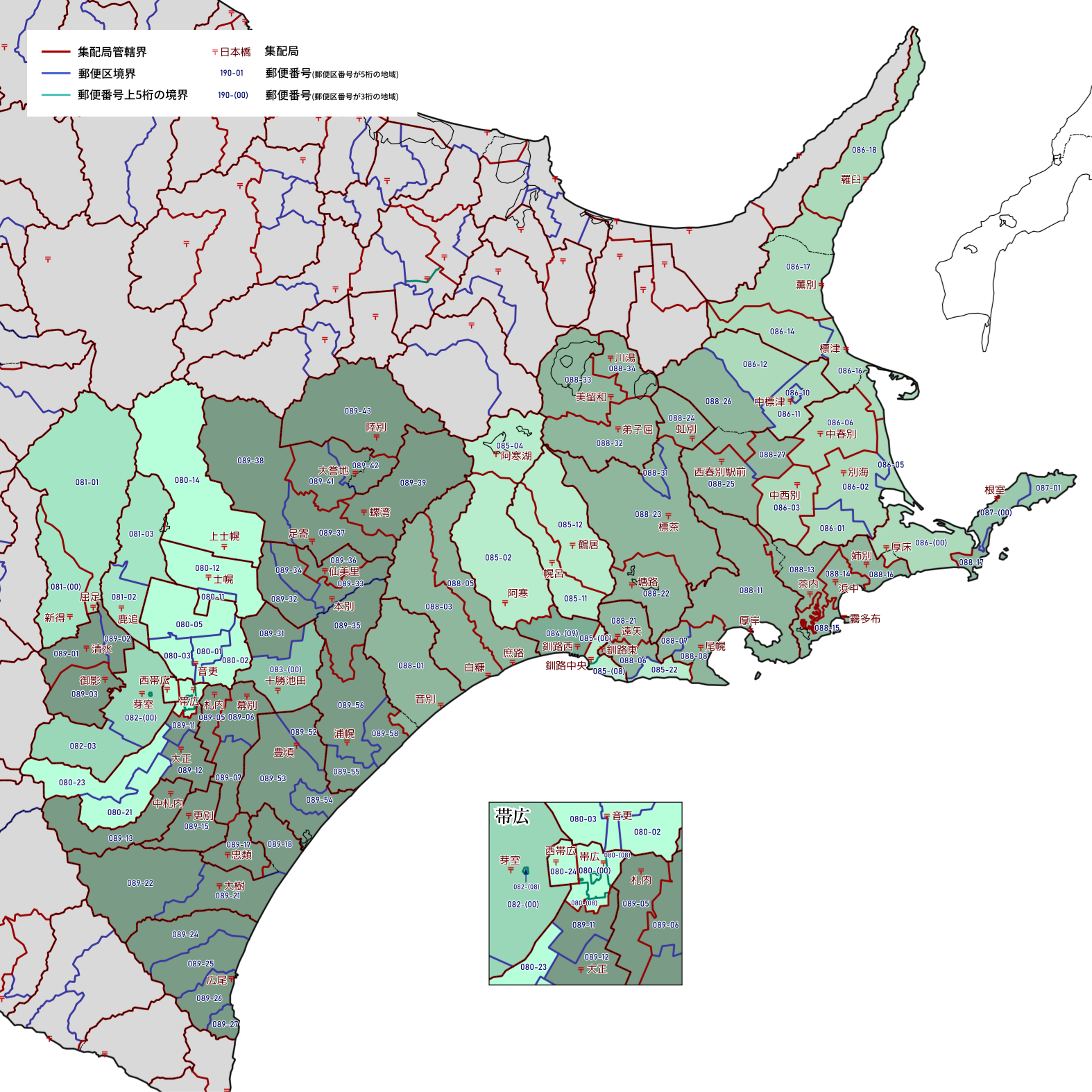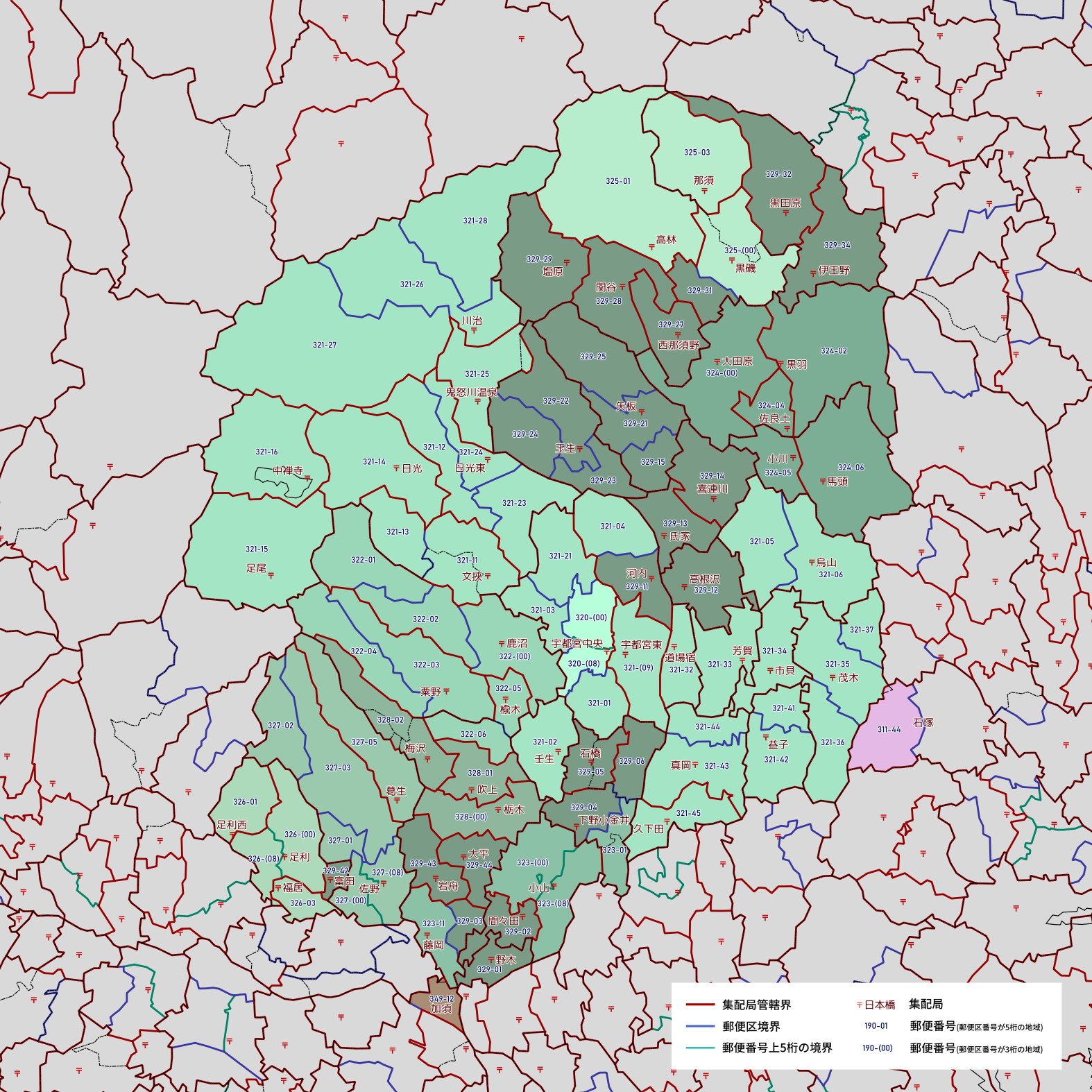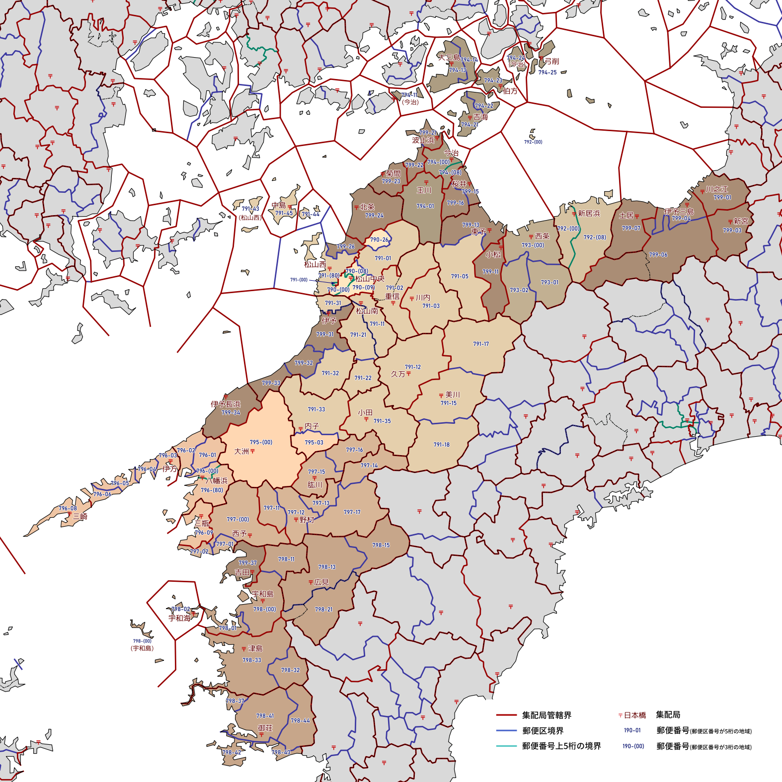 郵便番号の上5桁ごとに区分した都道府県別の地図です。